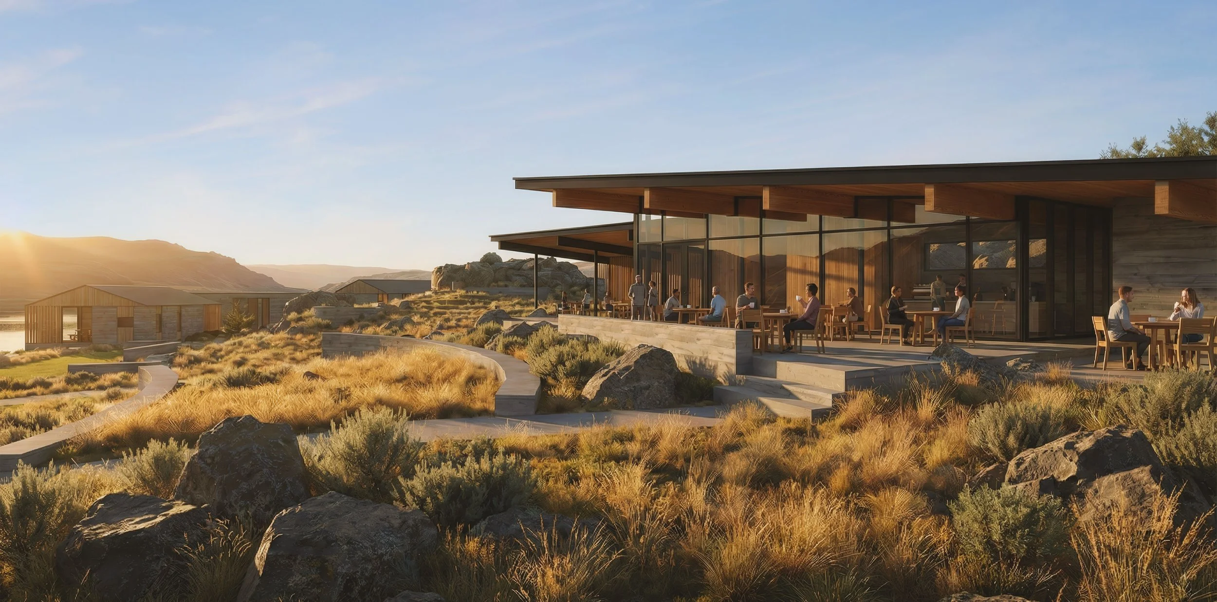 The Highground is taking shape at the center of Ravenwing. Thoughtfully situated between ancient basalt rock formations, it commands over 1,000 feet of riverfront and has breathtaking views up and down the Columbia.
